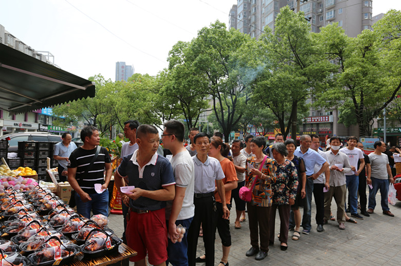 大吉大利!石門土雞烤雞石門一中店9月2日開業 繼石門土雞烤雞店單記店成功開店2個月后,石門土雞烤雞石門一中店又將于9月2日在石門一中附近的東方購物城廣場菜市場正式開業。 今年高考前夕,石門土雞烤雞曾連續多日在石門一中校門附近進行過營銷測試,受到石門一中廣大學生和學生家長的喜愛和搶購,一時還留下了“高考吃雞,大吉大利”的佳話。 石門一中陪讀家長搶購石門土雞烤雞實況。
